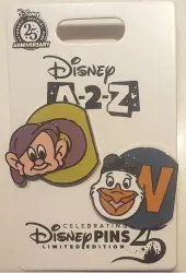 D and W - Dopey and Wilbur is a Limited Edition (LE) 1250 pin from the A-2-Z Magnetic Alphabet Series pin series. It was originally released on , 2025 and was available from Walt Disney World .