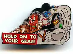 Hold on to Your Gear is an Open Edition pin from the Wild About Safety Collection pin series. It was originally released in August, 2003 and was available from Multiple Sources (WDW, DLR, etc.).