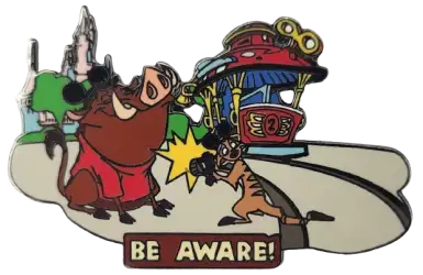 Be Aware! is an Open Edition pin from the Wild About Safety Collection pin series. It was originally released in August, 2003 and was available from Multiple Sources (WDW, DLR, etc.).