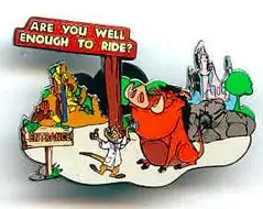 Are You Well Enough to Ride? is an Open Edition pin from the Wild About Safety Collection pin series. It was originally released in August, 2003 and was available from Multiple Sources (WDW, DLR, etc.).