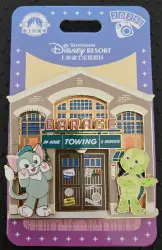 Gelatoni and OluMel Garage is a Limited Edition (LE) 300 pin from the Pin Trading Fun Day 2025 pin series. It was originally released 2025 and was available from Shanghai Disney Resort .