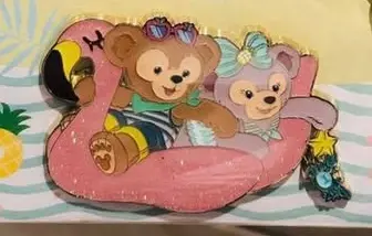 Duffy and ShellieMay Flamingo Pool Floaty is an Open Edition pin from the Shanghai Summer Beach Booster Set Disney pin series. It was originally released on , 2019 and was available from Shanghai Disney Resort .