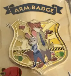 Nick & Judy Badge is an Open Edition pin from the Zootopia Collection Arm-Badge Metal Badge Surprise Box pin series. It was originally released on , 2025 and was available from an Officially Licensed Disney trading pin vendor (see description for more information).