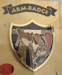 Nick and Judy Police Badge is an Open Edition pin from the Zootopia Collection Arm-Badge Metal Badge Surprise Box pin series. It was originally released on , 2025 and was available from an Officially Licensed Disney trading pin vendor (see description for more information).