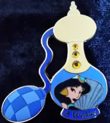 3 Wishes (Jasmine) is a Limited Edition (LE) 2000 pin from the Eau De Magique Series pin series. It was originally released on , 2014 and was available from Multiple Sources (WDW, DLR, etc.).