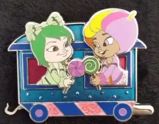 Minty and Snowanna is a Limited Edition (LE) 400 pin from the Wreck it Ralph Train pin series. It was originally released on , 2014 and was available from Disney Studio Store Hollywood / Soda Fountain .