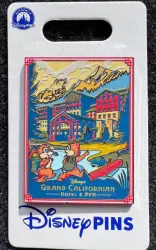 Grand Californian with Chip and Dale Hiking is an Open Edition pin from the Disney’s Grand Californian Hotel & Spa pin series. It was originally released on , 2025 and was available from Disneyland Resort .
