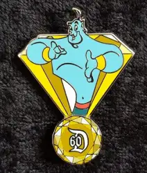 Genie Standee Token is a Limited Edition (LE) 3000 pin in the Pin Trading Board Game Boxed Set 5-pin set from the Disneyland Diamond Celebration Event pin series. It was originally released on , 2015 and was available from Disneyland Resort .