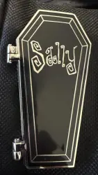 Sally Coffin is a Limited Edition (LE) 500 pin from the The Nightmare Before Christmas Disney pin series. It was originally released on , 2006 and was available from Disney Studio Store Hollywood / Soda Fountain .