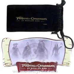 At World's End Movie Poster Scroll is a Limited Edition (LE) 500 pin from the Pirates of the Caribbean - At World's End pin series. It was originally released on , 2007 and was available from Disney Studio Store Hollywood / Soda Fountain .