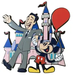 Fantasy Mickey and Walt Disney with Castle and Balloon is a Limited Edition (LE) pin from the Jumbo pin series. It is an Unlicensed (Fantasy) pin, so therefore it is not allowed to be traded in the Disney Parks.