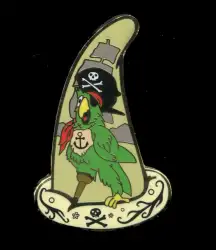 Peg Leg Pirate Parrot is a Limited Edition (LE) 250 pin from the Sorcerer Hats Mystery Pin Collection - Pirates of the Caribbean pin series. It was originally released on , 2011 and was available from Walt Disney Imagineering .