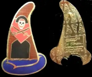 Jolly Roger (Mystery Chaser) is a Limited Edition (LE) 150 pin from the Sorcerer Hats Mystery Pin Collection - Pirates of the Caribbean pin series. It was originally released on , 2011 and was available from Walt Disney Imagineering .