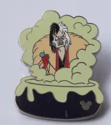 Cruella De Vil Cauldron is an Open Edition pin from the Cast Lanyard Collection IV - Cauldron pin series. It was originally released on , 2006 and was available from Walt Disney World .