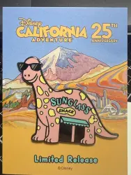 Sunglass Shack Dinosaur is a Limited Release pin from the D23 DCA 25th Anniversary pin series. It was originally released on , 2026 and was available from Disney Fan Club .