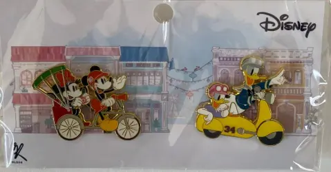 Mickey and Minnie Mouse on Tuk Tuk, Donald and Daisy Duck on Moped is a Limited Edition (LE) pin from the Singapore Disney Licensed via Klosh Disney pin series. It was originally released on , 2023 and was available from an Officially Licensed Disney trading pin vendor (see description for more information).