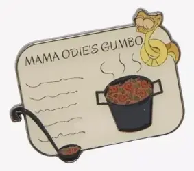 Mama Odie's Gumbo is an Open Edition pin from the Princess and the Frog Recipe Cards Mystery Set pin series. It was originally released on , 2026 and was available from Loungefly .