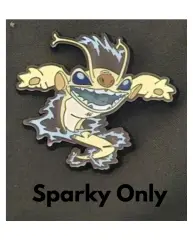 Sparky - Only is an Open Edition pin from the BoxLunch - Lilo & Stitch Experiment Cousins & Spaceships Blind Box Pin Set Disney pin series. It was originally released on , 2025 and was available from Loungefly .
