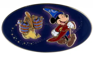 Pin features Mickey Mouse , Sorcerer Mickey and Magic Brooms from Fantasia