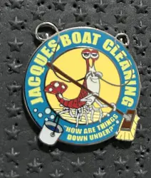 Jacques Boat Cleaning is a Limited Edition (LE) 300 pin from the Crush’s Coaster DLP Pin Set Disney pin series. It was originally released 2007 and was available from Walt Disney Imagineering .