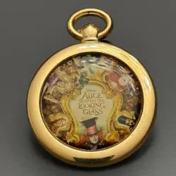 Pin features Alice , The Cheshire Cat , The Mad Hatter , The Queen of Hearts and The White Rabbit from Tim Burton's Alice Through the Looking Glass