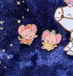 Cinderella Mice is a pin from the Cinderella Mice pin series. It is an Unlicensed (Fantasy) pin, so therefore it is not allowed to be traded in the Disney Parks.