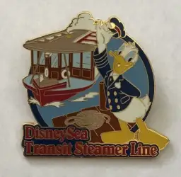 Disney Sea Transit Steamer Line with Donald is an Open Edition pin from the Tokyo DisneySea Monthly Pin Collection pin series. It was originally released on , 2011 and was available from Tokyo Disneyland Resort .