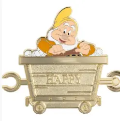 Happy Gold Chaser is a Limited Edition (LE) 100 pin from the Pink A La Mode (PALM) - Snow White and the Seven Dwarfs Mine Cart Set pin series. It was originally released on , 2025 and was available from an Officially Licensed Disney trading pin vendor (see description for more information).