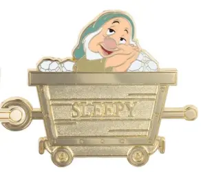 Sleepy Gold Chaser is a Limited Edition (LE) 100 pin from the Pink A La Mode (PALM) - Snow White and the Seven Dwarfs Mine Cart Set Disney pin series. It was originally released on , 2025 and was available from an Officially Licensed Disney trading pin vendor (see description for more information).