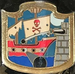 Pirates of the Caribbean Bombardment is a Limited Edition (LE) 300 pin from the Virtual Magic Kingdom Disney pin series. It was originally released 2008 and was available from Walt Disney Imagineering .