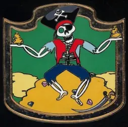 Pirates of the Caribbean Treasure Skeleton is a Limited Edition (LE) 300 pin from the Virtual Magic Kingdom Disney pin series. It was originally released 2008 and was available from Walt Disney Imagineering .