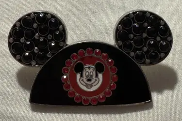 Mickey Mouse Ears - Black and Red Jewels is an Open Edition pin. It was originally released on , 2007 and was available from Multiple Sources (WDW, DLR, etc.).