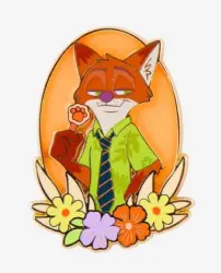 Nick Wilde is an Open Edition pin from the Zootopia Characters Flower Frame Blind Box Disney pin series. It was originally released on , 2026 and was available from an Officially Licensed Disney trading pin vendor (see description for more information).