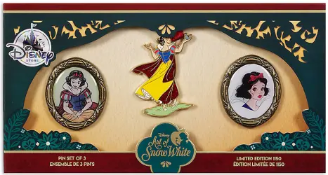 Snow White - Complete Box Set is a Limited Edition (LE) 1150 3-pin set from the Art of Snow White Boxed Set Disney pin series. It was originally released on , 2017 and was available from Disney Fan Club .