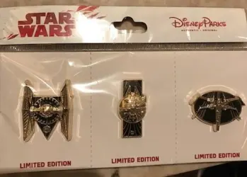Gold Ship Three-Pin Set is a Limited Edition (LE) 1000 pin from the Star Wars - The Last Jedi Disney pin series. It was originally released on , 2017 and was available from Multiple Sources (WDW, DLR, etc.).