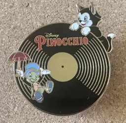 Pin features Figaro and Jiminy Cricket from Pinocchio (movie)