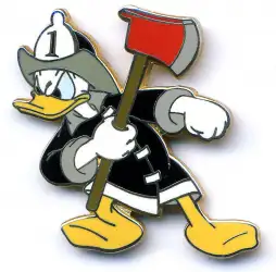 Firefighter Donald is an Open Edition pin from the Rescue Series pin series. It was originally released on , 2002 and was available from Multiple Sources (WDW, DLR, etc.).