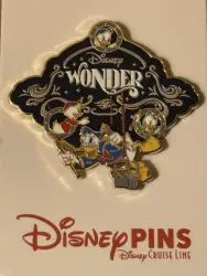 Disney Wonder Logo with Donald and Nephews is an Open Edition pin from the Disney Cruise Line Disney pin series. It was originally released on , 2026 and was available from Disney Cruise Line .