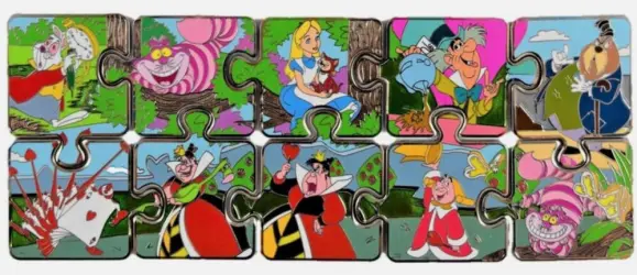 Alice in Wonderland Puzzle set is a Limited Release pin from the Character Connection Mystery Collection - Alice in Wonderland Puzzle Disney pin series. It was originally released on , 2016 and was available from Multiple Sources (WDW, DLR, etc.).