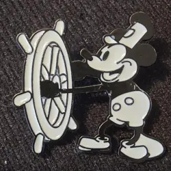 Mickey as Steamboat Willie is a pin. It is technically a Miscellaneous Non-Disney pin, so while being considered affiliated with Disney, it is not allowed to be traded in the Disney Parks.