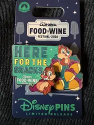 Chip and Dale is a Limited Release pin from the DCA Food and Wine Festival 2026 Disney pin series. It was originally released 2026 and was available from Disneyland Resort .