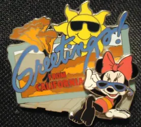 Greetings Over California Surprise is a Limited Edition (LE) 500 pin. It was originally released on , 2009 and was available from Disneyland Resort .