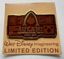 Aulani Construction Team is a Limited Edition (LE) pin. It was originally released in April, 2011 and was available from Walt Disney Imagineering .
