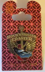 Rock'N Roller Coaster Flaming Car and Guitar Pin is an Open Edition pin from the Rock 'n' Roller Coaster pin series. It was originally released on , 2016 and was available from Walt Disney World .