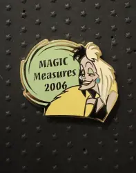 Cruella is a pin from the Magic Measures 2006 Disney pin series. It was originally released 2006 and was available from Disneyland Resort .