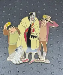Cruella with Horace and Jasper is a Limited Edition (LE) 100 pin from the Disney Auctions Villains and Sidekicks Disney pin series. It was originally released on , 2005 and was available from Disney Auctions .