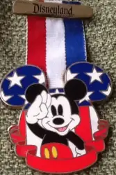 DLR - Mickey Salutes America Ribbon is an Open Edition pin from the Patriotic Mickey pin series. It was originally released on , 2006 and was available from Disneyland Resort .