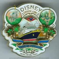 Logo with Cinderella Castle and Sleeping Beauty Castle is a Limited Edition (LE) 1000 pin from the Disney Cruise Line Destinations: Panama Canal Crossing 2005 pin series. It was originally released on , 2005 and was available from Disney Cruise Line .