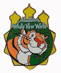 Aladdin's Whole New World - Rajah is an Open Edition pin from the Tokyo DisneySea Abu's Bazaar Game Prizes pin series. It was originally released on , 2005 and was available from Tokyo Disneyland Resort .