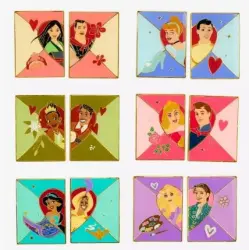Couples Love Letters Complete 6-Pin Set is an Open Edition pin from the Loungefly Disney Princess Couple Blind Box Enamel Pin Set — BoxLunch Exclusive Disney pin series. It was originally released on , 2025 and was available from Loungefly .